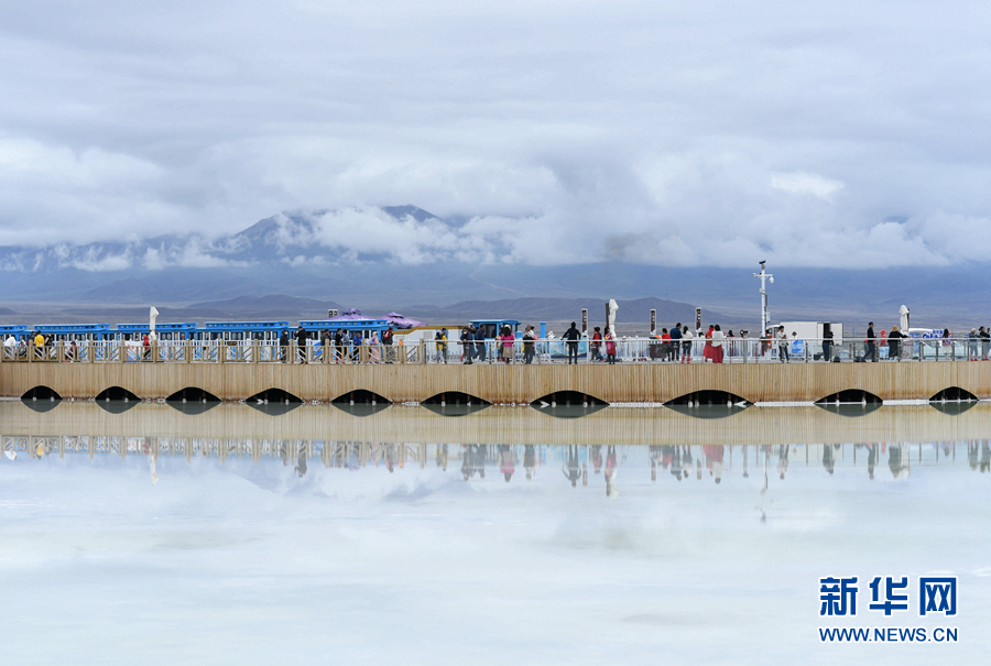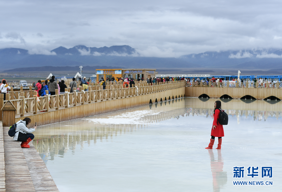 游客在茶卡天空壹號(hào)景區(qū)內(nèi)游覽。新華網(wǎng) 卡婭梅朵 攝