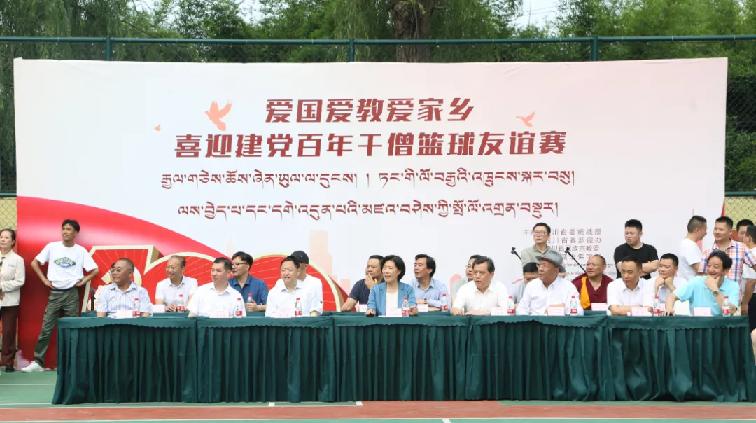 在全國上下喜迎黨的百年華誕之際,6月23日上午,四川藏傳佛教僧人和統(tǒng)戰(zhàn)民宗系統(tǒng)干部籃球友誼賽在位于成都市郫都區(qū)的四川藏語佛學(xué)院正式拉開帷幕。本次友誼賽由四川省委統(tǒng)戰(zhàn)部、省委涉藏辦、省民族宗教委聯(lián)合主辦,省委常委、統(tǒng)戰(zhàn)部部長田向利出席開幕式,省委統(tǒng)戰(zhàn)部常務(wù)副部長鐘家霖宣布賽事開幕并為首場球賽開球,省委統(tǒng)戰(zhàn)部副部長、省民族宗教委黨組書記張富國致辭。