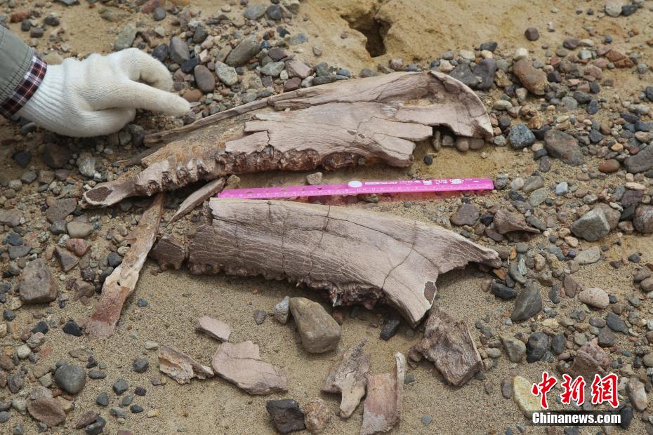 7月10日,從青海省地質(zhì)調(diào)查院獲悉,由該院承擔(dān)的“青海省古生物化石產(chǎn)地示范調(diào)查”項(xiàng)目,在青海省內(nèi)發(fā)現(xiàn)疊層石、古脊椎動物和魚類3處具有較高科學(xué)研究價值的化石產(chǎn)地。圖為犀牛下頜骨。 保廣普 攝