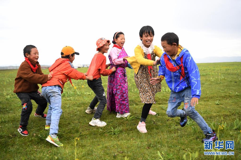 暑假來臨,在海拔3000多米的甘肅省甘南藏族自治州瑪曲草原上,瑪曲縣河曲馬場小學(xué)的孩子們?cè)诶蠋煹膸ьI(lǐng)下,暫別課堂學(xué)習(xí),用豐富多彩的游戲開啟歡樂暑假時(shí)光。