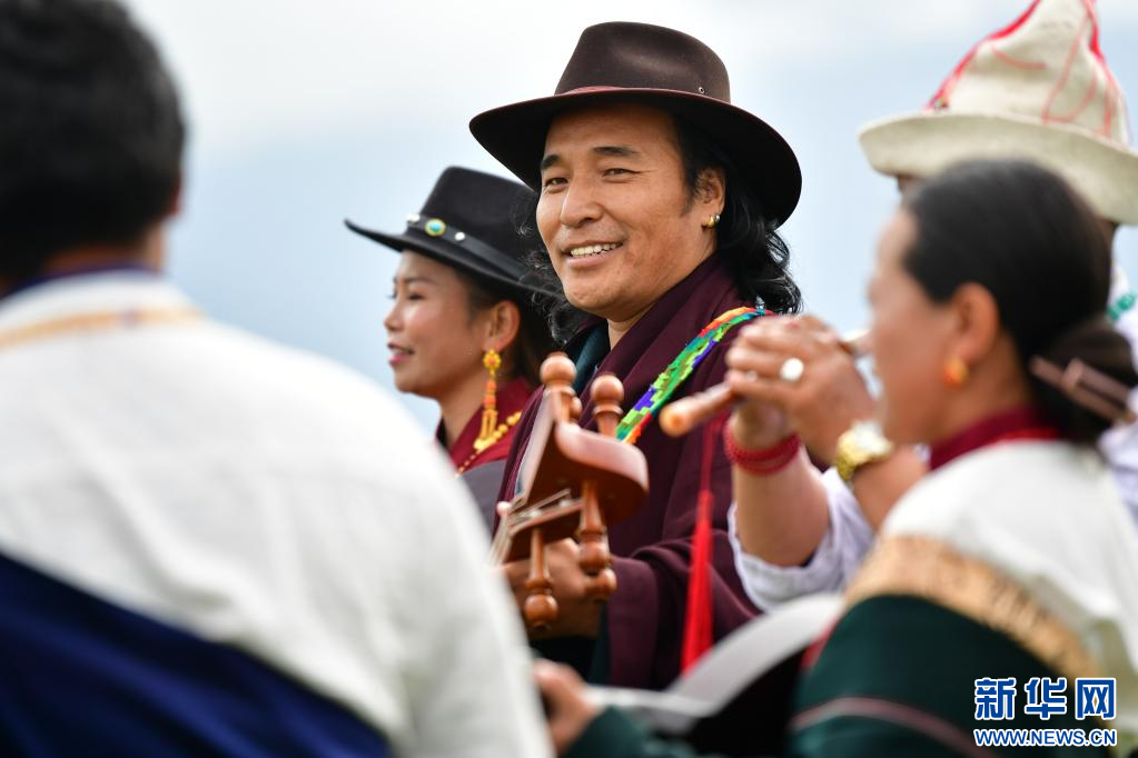 夏日的草原“流行樂” 格薩爾彈唱藝人在瑪曲草原上彈唱格薩爾(7月14日攝)。新華社記者 杜哲宇 攝
