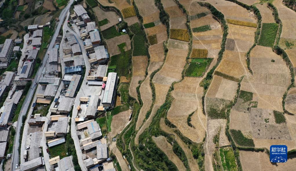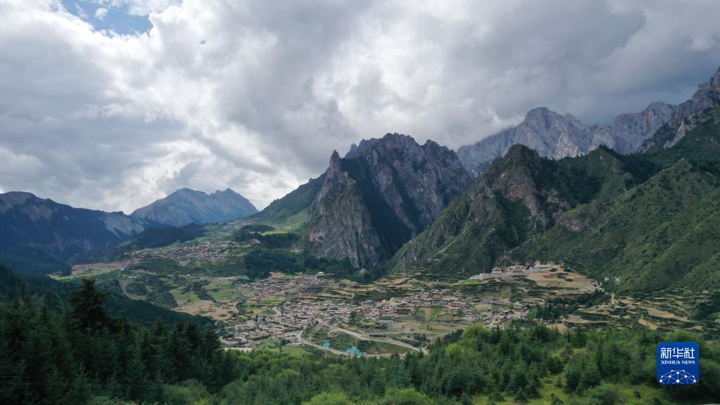 這是8月28日拍攝的扎尕那美麗風(fēng)光(無人機(jī)照片)。新華社記者 陳斌 攝
