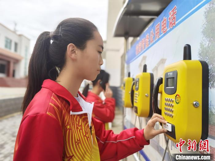 圖為臨潭一中學(xué)生王若玉刷電子校徽給家人打電話。張婧 攝