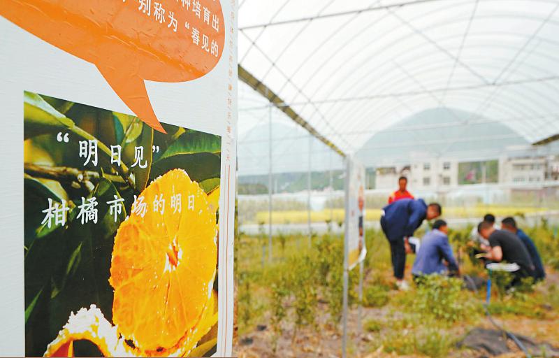 “春見(jiàn)”的改良品種“明日見(jiàn)”,果苗長(zhǎng)勢(shì)不錯(cuò)。 四川日?qǐng)?bào)全媒體記者 華小峰 攝