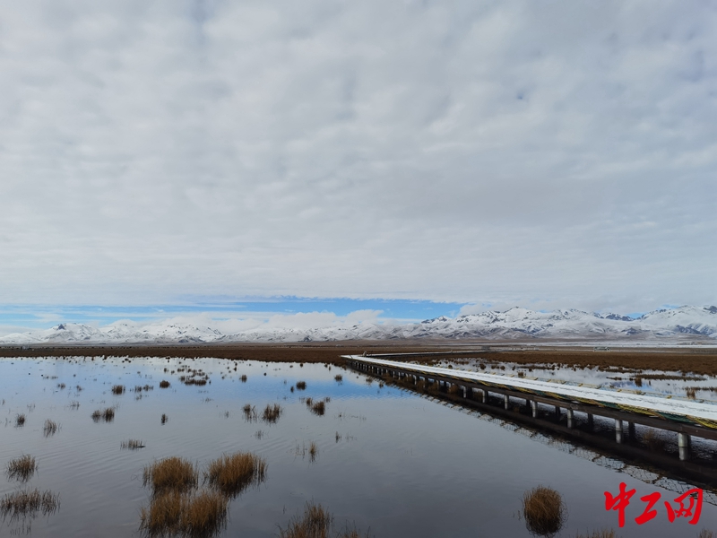 10月20日,“母親河畔的中國(guó)”采訪團(tuán)來(lái)到位于四川若爾蓋濕地國(guó)家級(jí)自然保護(hù)區(qū)的花湖濕地。十月末的若爾蓋縣氣溫已接近零度,遠(yuǎn)處山峰銀裝素裹,陽(yáng)光從低沉的云朵中一瀉千里,照亮了靜謐的花湖濕地。