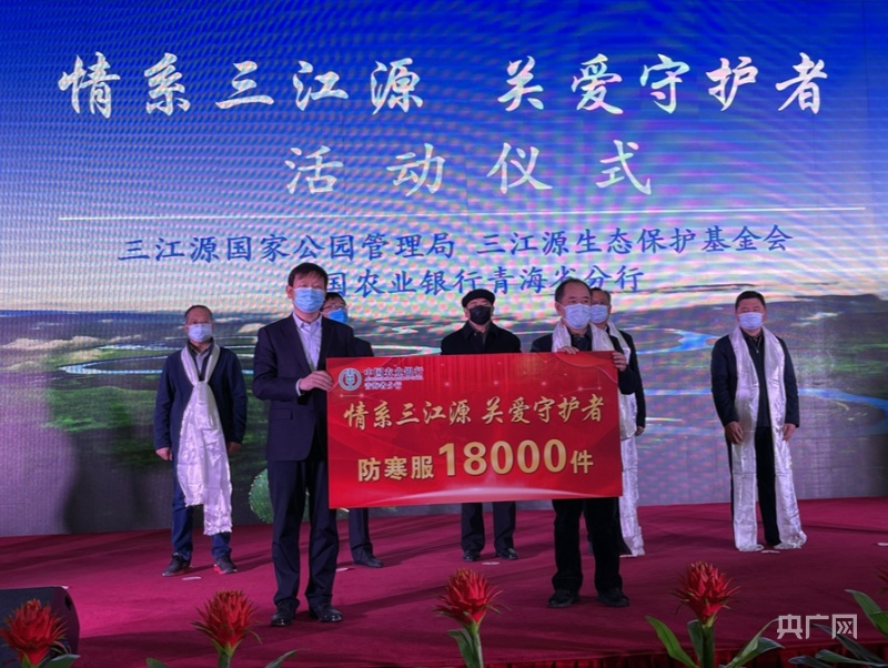 12月9日,三江源生態(tài)保護基金會、三江源國家公園管理局聯(lián)合中國農(nóng)業(yè)銀行青海省分行在青海省科技館共同舉辦“情系三江源 關(guān)愛守護者”公益捐贈活動。本次活動旨在切實為三江源生態(tài)管護員解決御寒問題,宣傳三江源“中華水塔”生態(tài)保護、引導社會愛心募捐。