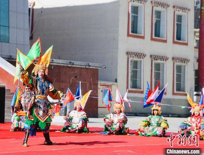 為保護(hù)和傳承文化遺產(chǎn),弘揚優(yōu)秀傳統(tǒng)文化,國家級非物質(zhì)文化遺產(chǎn)代表性項目青海馬背藏戲《丹瑪之子》14日在青海省果洛州格薩爾文化廣場展演。