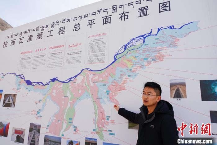 圖為貴德縣拉西瓦灌溉工程管理局副局長(zhǎng)方軍介紹工程詳情。馬銘言 攝