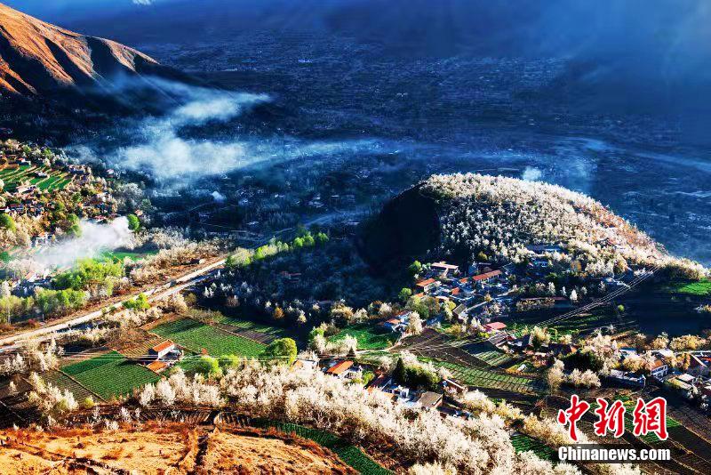 近日,四川省阿壩州金川縣萬畝梨花綻放,滿山遍野,雪白的梨花,隨風(fēng)飄絮,藍(lán)天白云,花海飄香,令人陶醉,吸引眾多游客前來游覽、拍照。[詳細(xì)] -