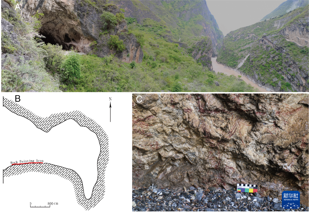 年代測定表明,位于云南省麗江市金沙江虎跳峽的萬人洞巖畫可追溯至晚更新世末至全新世早期,是目前有年代數(shù)據(jù)記錄的東亞大陸最古老的彩繪巖畫,由該地區(qū)舊石器時代的狩獵—采集人群創(chuàng)作。相關研究成果于近期發(fā)表在國際考古學期刊《考古科學雜志》。