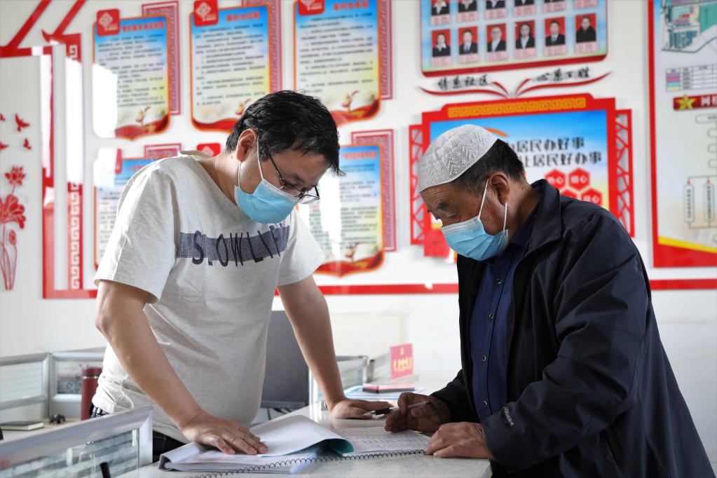 3月9日,在社區(qū)“石榴籽家園”,居民馬應洪(右一)在向工作人員咨詢醫(yī)保相關政策。新華社記者 趙玉和 攝