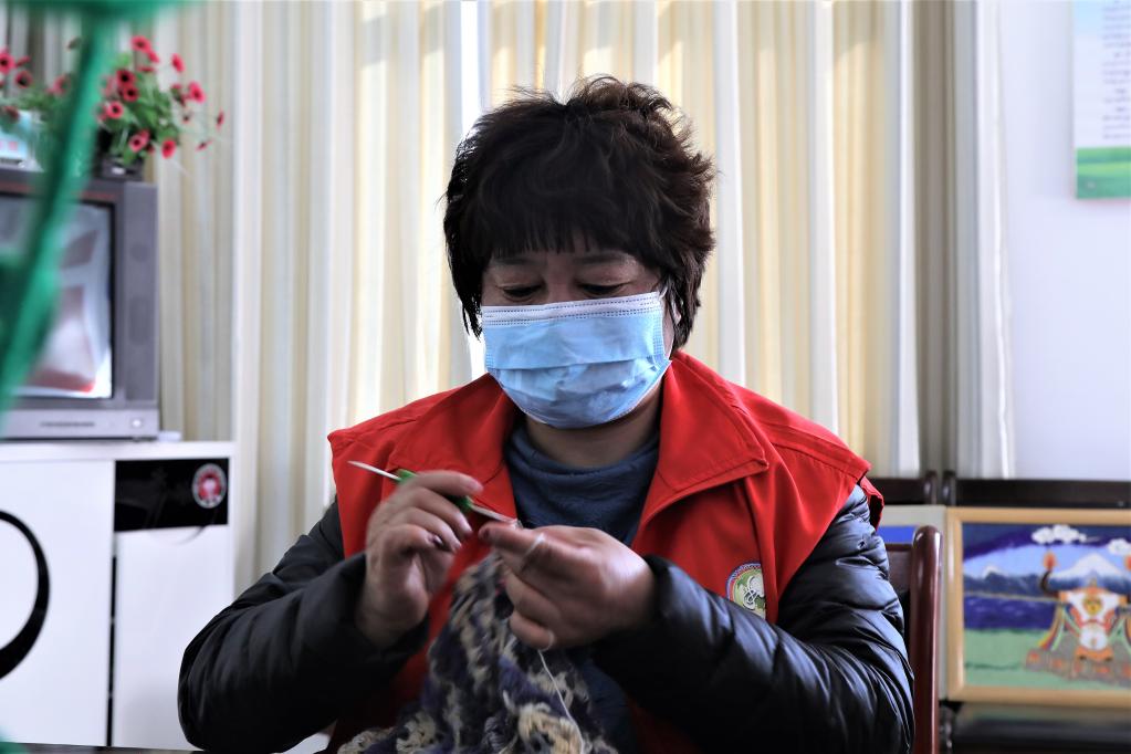 在社區(qū)“石榴籽家園”里,各民族婦女利用閑暇時間學習鉤織、掐絲唐卡、十字繡等技藝。藏族婦女茍曉紅說:“我們制作的抱枕、坐墊、裝飾畫等手工藝品在線上線下銷售,讓我們在家門口掙到了錢?!?/p>