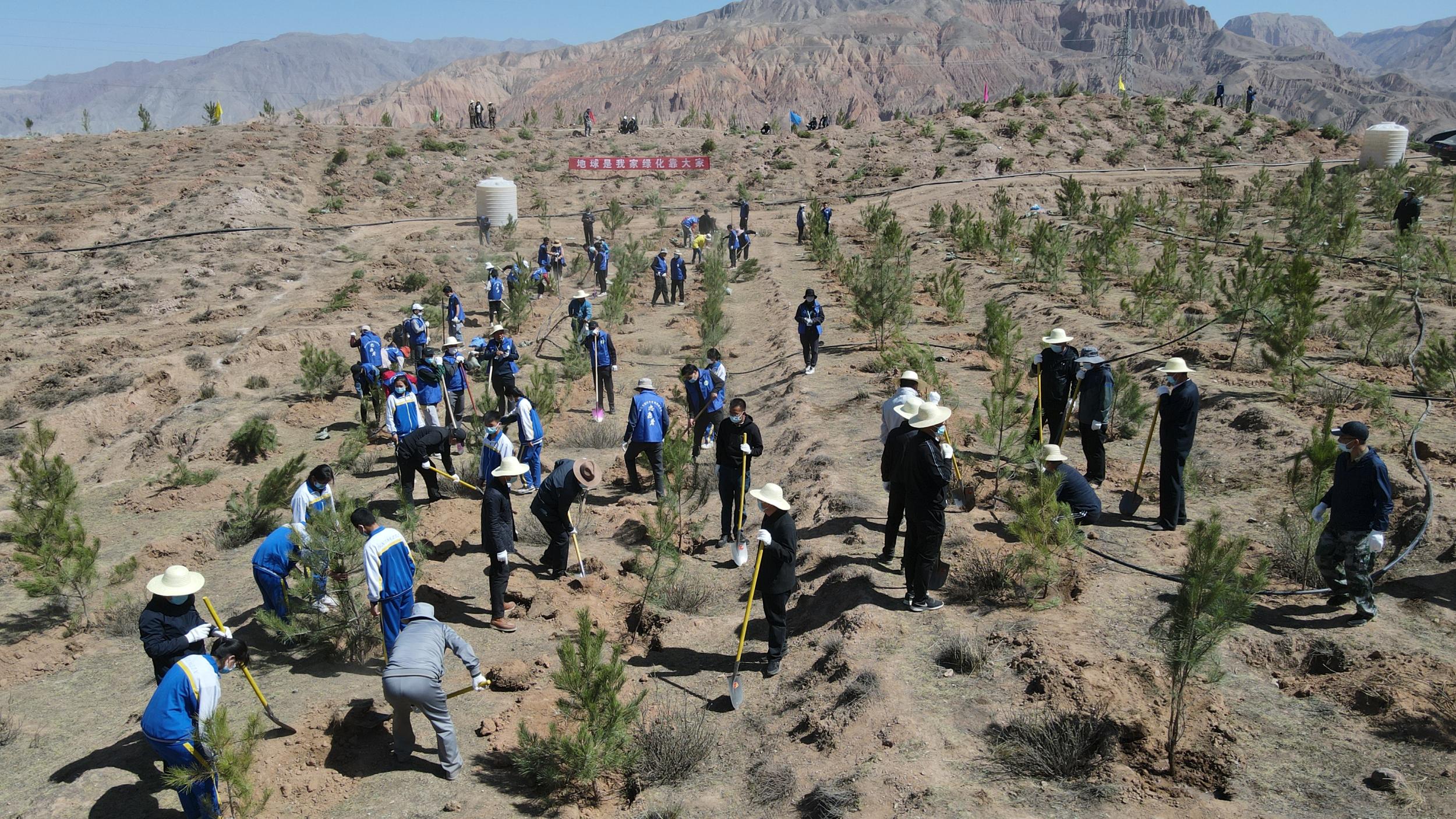近日,黃南藏族自治州2022年全民義務(wù)植樹造林“第一槍”在同仁市保安鎮(zhèn)互助灘打響,機(jī)關(guān)干部職工、宗教人士、學(xué)生、退休老干部等3200余人為“山水黃南”再添新綠。