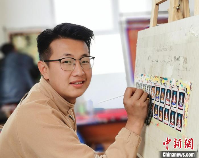 今年23歲的羅藏成立,10歲開始學(xué)畫畫,12歲時跟著桑杰加系統(tǒng)學(xué)習(xí)唐卡,目前,羅藏成立專注于繪制微型唐卡——扎卡,每個月也能掙1萬元左右。