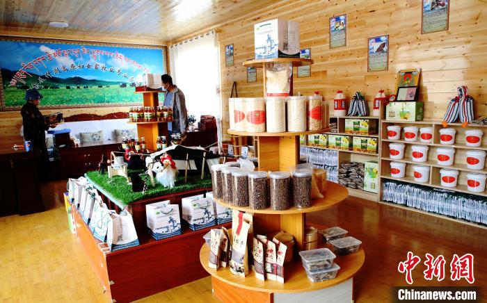 圖為夏吾措和合作伙伴打造的高原婦女畜牧業(yè)專(zhuān)業(yè)合作社的門(mén)店?!●R芝芬 攝