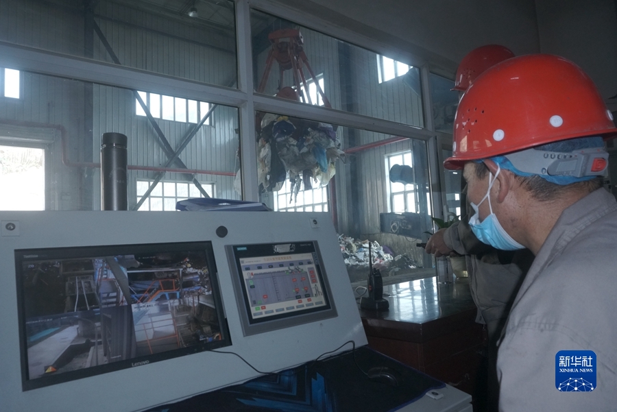 6月16日,門源縣泉口鎮(zhèn)生活垃圾高溫?zé)峤馓幚碚镜墓ぷ魅藛T正在忙碌。新華社記者 周盛盛 攝