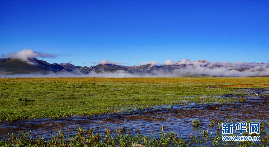 瑪多縣境內(nèi)的湖泊。新華社記者 吳剛 攝