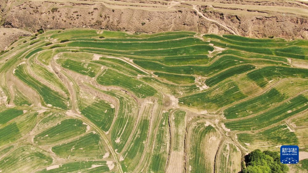 2022年6月16日,黃南藏族自治州同仁市黃乃亥鄉(xiāng)日秀瑪村內(nèi),黑青稞長勢喜人(無人機照片)。新華社記者 王艷 攝