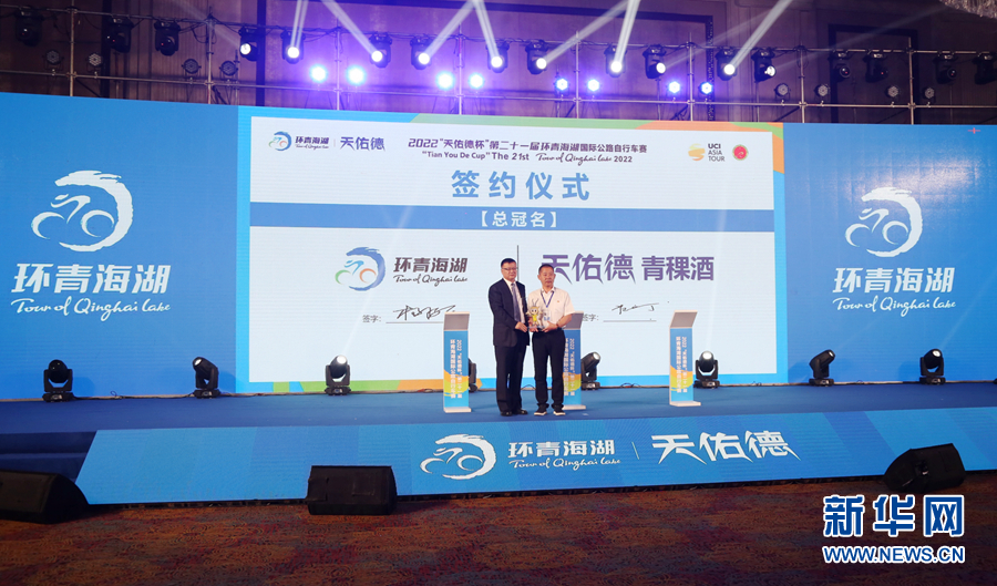 環(huán)湖賽組委會辦公室常務(wù)副主任、青海省體育局副局長楊海寧代表組委會與贊助商簽約。新華網(wǎng) 卡婭梅朵 攝