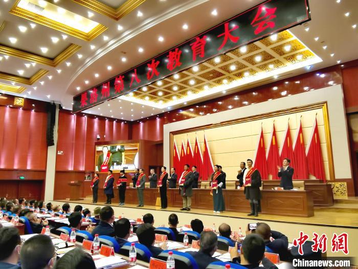 圖為青海省果洛州表彰教育系統(tǒng)先進(jìn)代表。張?zhí)砀?攝