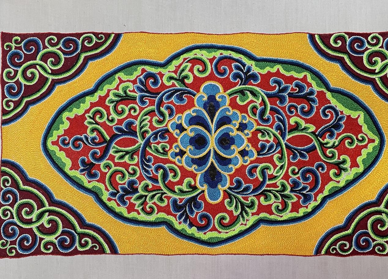 “目前我主要是在做建筑彩繪,我想把這些圖案都運用到我們的建筑當中,熱貢藝術(建筑彩繪)也就能更好地傳承下去了?!备窃诓世L創(chuàng)作中融入了清代旋子畫法和明代和璽畫法,形成了自己獨特的彩繪風格,曾設計并完成了甘肅省政府及水銀樓兩個項目的彩繪工程。