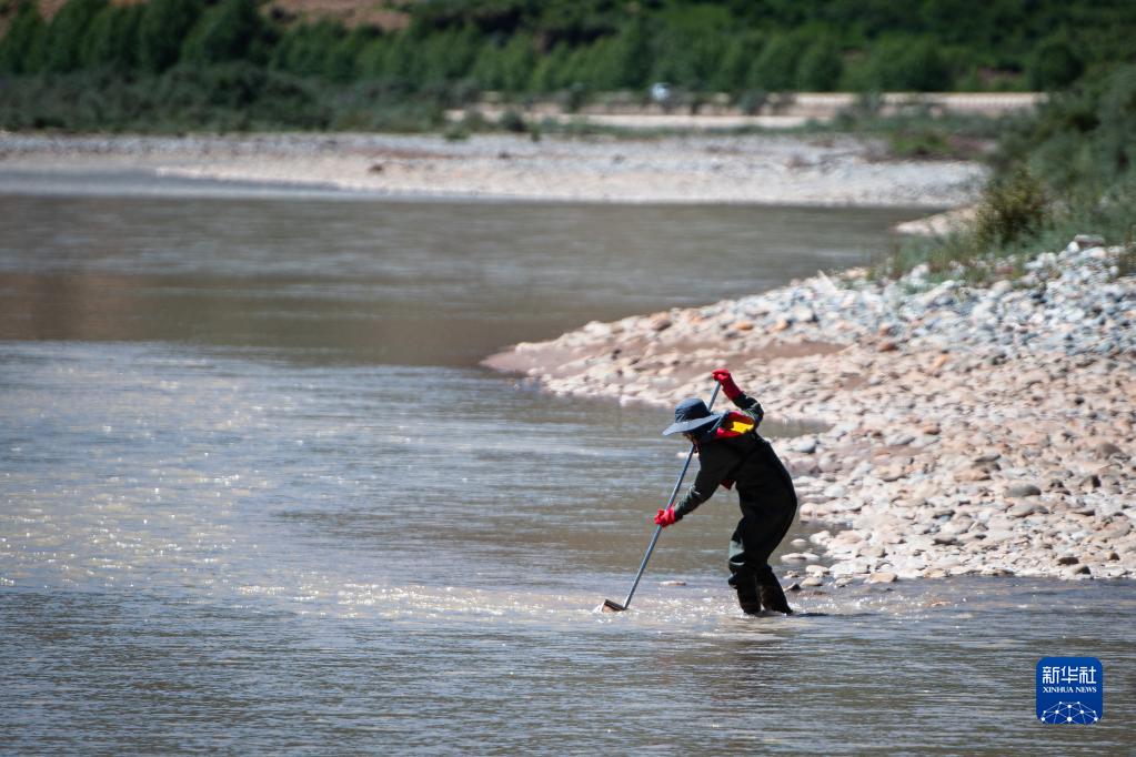 7月24日,長江科學(xué)院科考隊(duì)員劉晗在瀾滄江源區(qū)的扎曲采集魚類樣本。新華社記者 肖藝九 攝