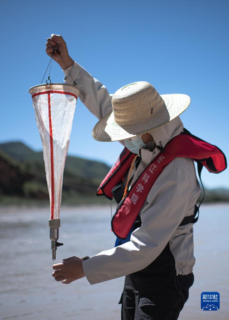 7月24日,長江科學(xué)院科考隊(duì)員李魯?shù)ぴ跒憸娼磪^(qū)的扎曲采集浮游動物樣本。新華社記者 肖藝九 攝