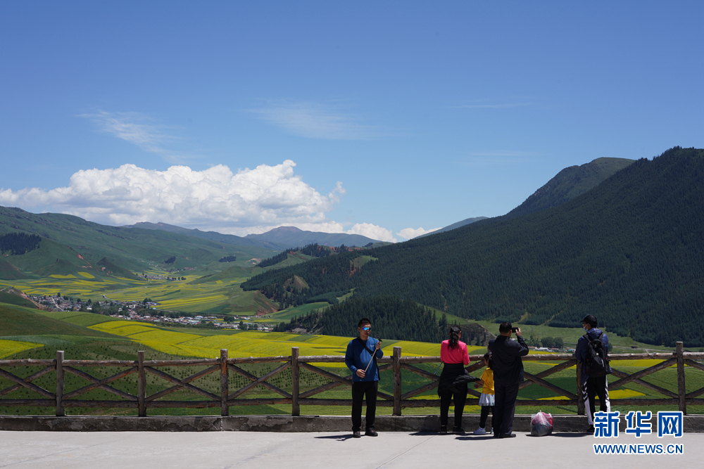 盛夏時(shí)節(jié),青海省海北藏族自治州祁連縣的卓爾山景區(qū)綠意盎然,風(fēng)景如畫。