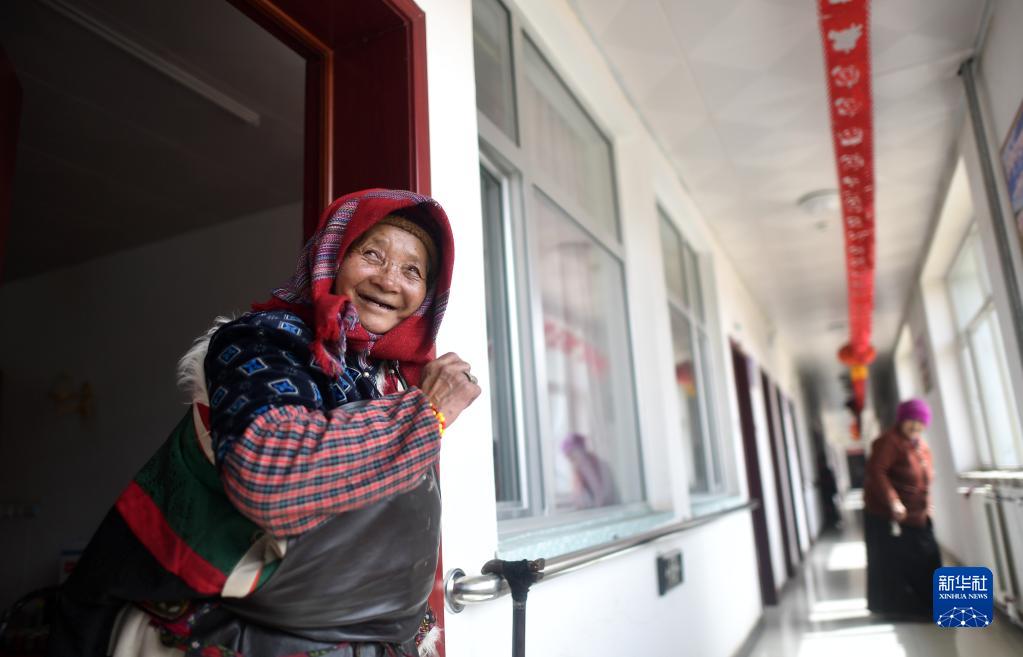 在青海省玉樹藏族自治州治多縣,提沙索忠老人在幸福敬老院內(2021年3月14日攝)。新華社記者 張宏祥 攝