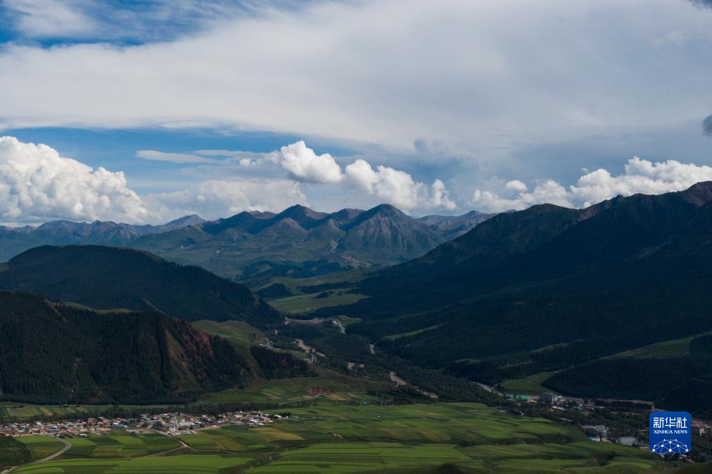 青海省海北藏族自治州祁連縣風(fēng)光(8月10日攝,無人機(jī)照片)。新華社記者 張龍 攝