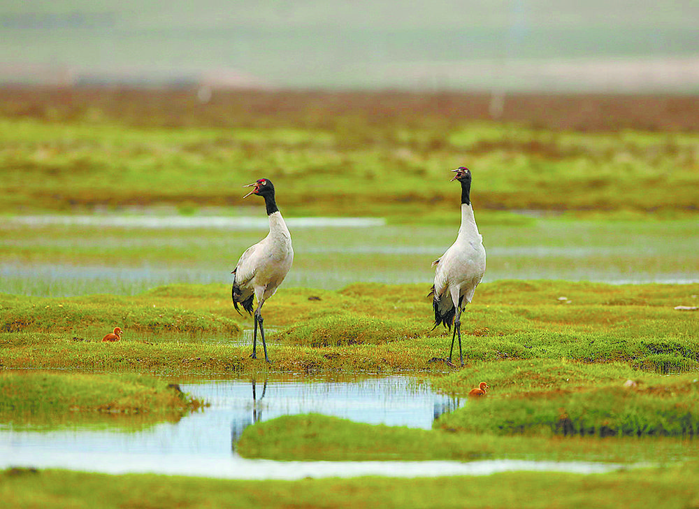 黑頸鶴頻繁“駐足”中國“鹽湖城”