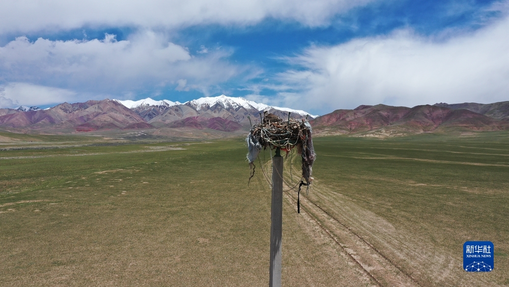 這是6月28日在蘇里鄉(xiāng)草原上拍攝的“招鷹架”。(新華社記者 李占軼 攝)
