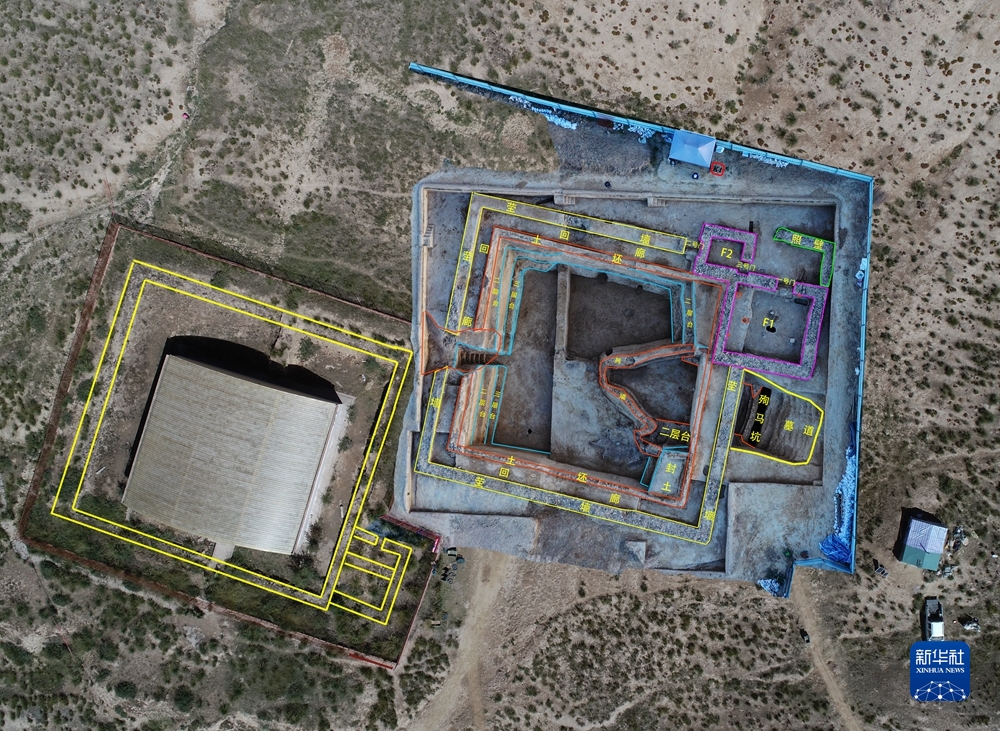“2022年的工作重點是對2007QM1進行保護性清理發(fā)掘?!敝袊鐣茖W(xué)院考古研究所副研究員韓建華介紹,目前2007QM1清理發(fā)掘工作已經(jīng)完成。據(jù)介紹,2007QM1位于2018血渭一號墓西側(cè),緊挨2018血渭一號墓西塋墻。早年已發(fā)掘出塋墻、地上建筑、墓道、甬道、照墻和墓室,但未公布考古資料。為保護展示遺址,經(jīng)重新發(fā)掘,確認(rèn)該墓墓園形制和規(guī)模與2018血渭一號墓墓園相似。