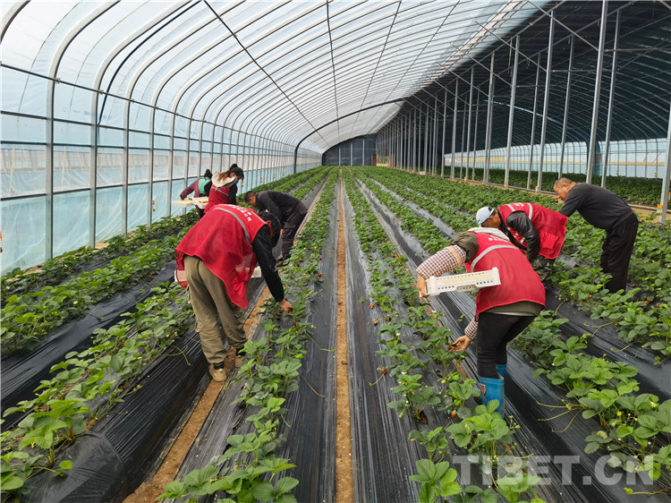 中國西藏網(wǎng)訊 時下,在四川省甘孜藏族自治州理塘縣濯?,F(xiàn)代農(nóng)業(yè)產(chǎn)業(yè)園區(qū),120畝草莓經(jīng)過100天的生長后迎來了收獲季。走進(jìn)園區(qū)康呷村種植基地,大棚里的草莓長勢喜人,當(dāng)?shù)?0多名農(nóng)牧民群眾正忙著梳葉、采摘,大棚里四處洋溢著豐收的喜悅?!耙郧拔覀兂朔N青稞、土豆之外,其余大多數(shù)時間都到處去打臨時工,收入也很不穩(wěn)定,一年到頭只能掙幾千元錢?!爆F(xiàn)年25歲的濯桑鄉(xiāng)漢戈村民格絨志瑪說道。