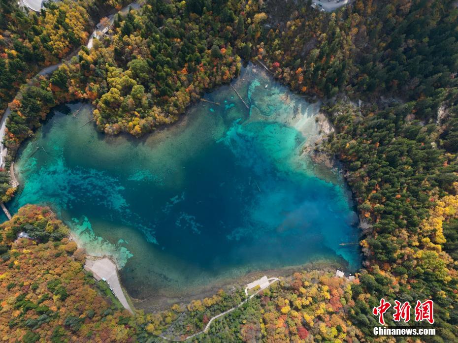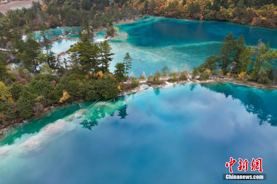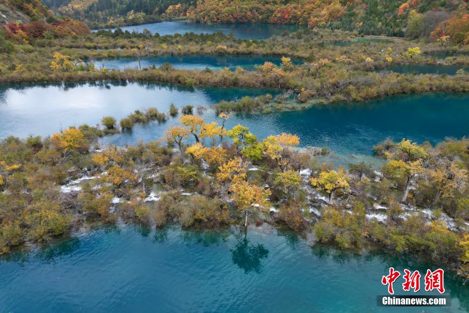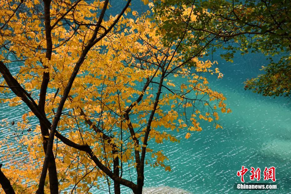 10月23日,深秋時節(jié),四川九寨溝如同油畫一般,漫山遍野的紅葉絢麗多彩,與清澈見底的湖水交相輝映,美輪美奐,“秋日童話”正上演。 張浪 攝
