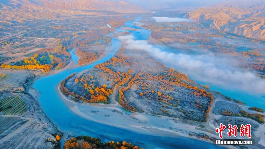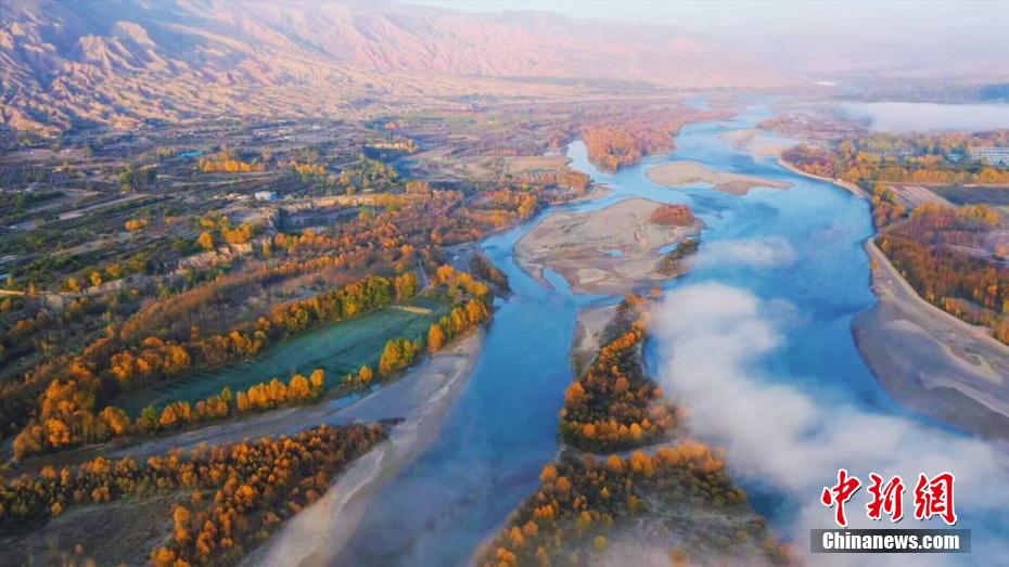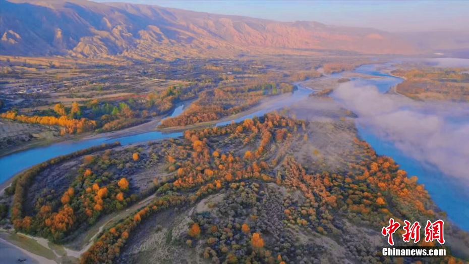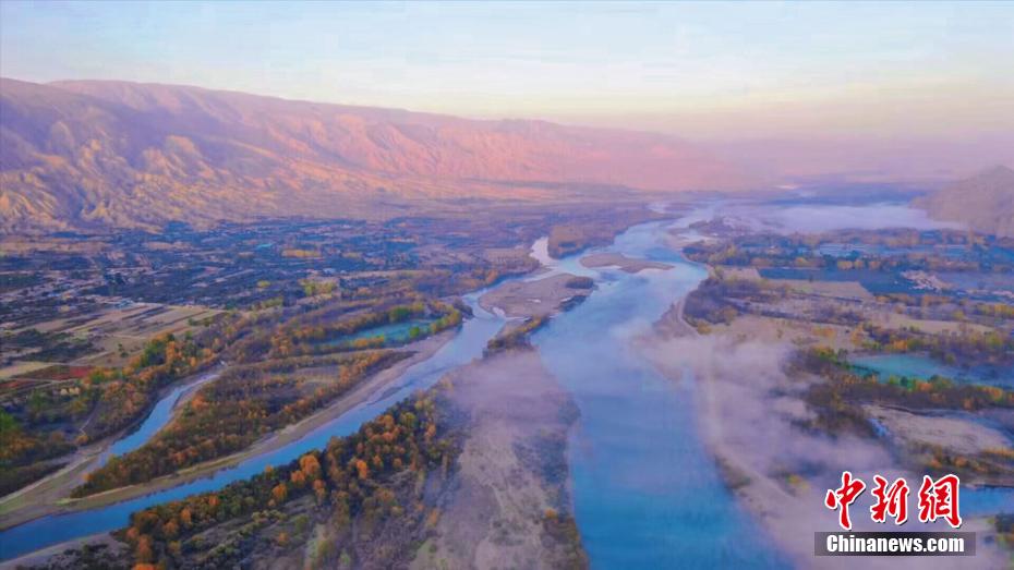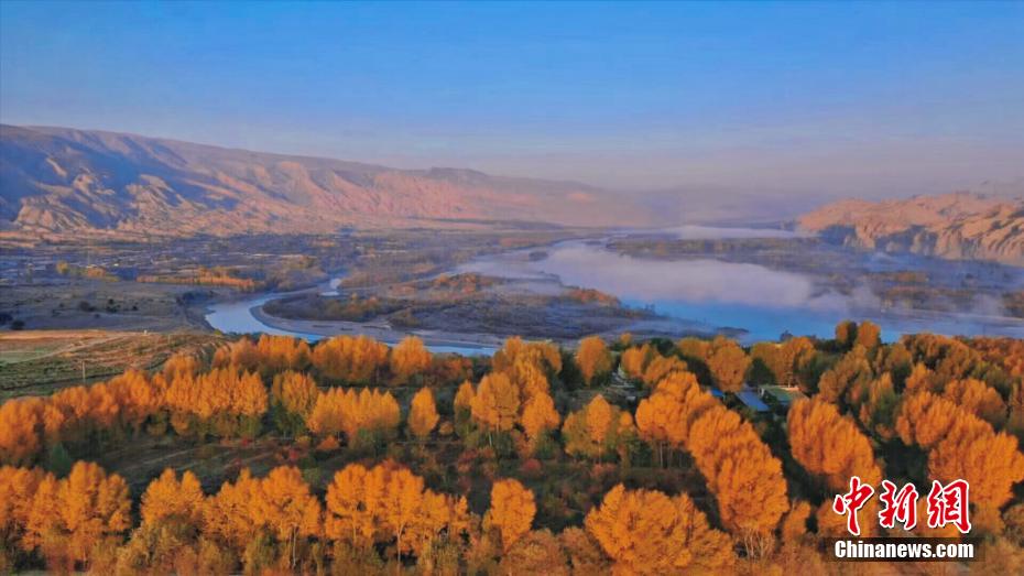 深秋時節(jié),享有“天下黃河貴德清”美譽(yù)的青海省貴德縣秋意正濃。黃河岸畔,一層層薄霧如飄紗籠罩河面,碧波蕩漾的黃河水與兩岸樹林、農(nóng)田、丹霞地貌交相輝映,美景如畫。青海省是中華民族母親河黃河的發(fā)源省,黃河流經(jīng)貴德76.8公里。貴德縣融媒體中心 供圖