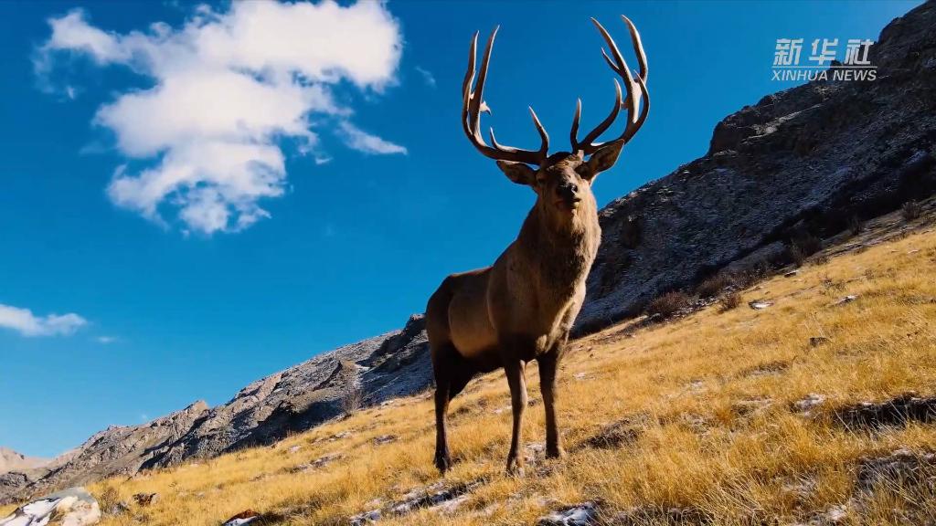 青海:柏樹山下 白唇鹿現(xiàn)身