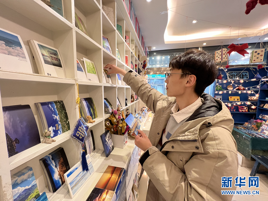 張開心告訴記者,他在莫家街尋找美食時(shí)發(fā)現(xiàn)了這家小店,一個(gè)巨大郵筒很是吸引眼球。走到店內(nèi),充滿特色的文創(chuàng)產(chǎn)品讓他眼前一亮?!案咴幕?dú)具特色。等到了夏季,我還會(huì)來感受高原美景,跟朋友們?cè)诤1辈菰先鲆啊⒃谇嗪:向T行、在茶卡鹽湖打卡。”張開心說道。