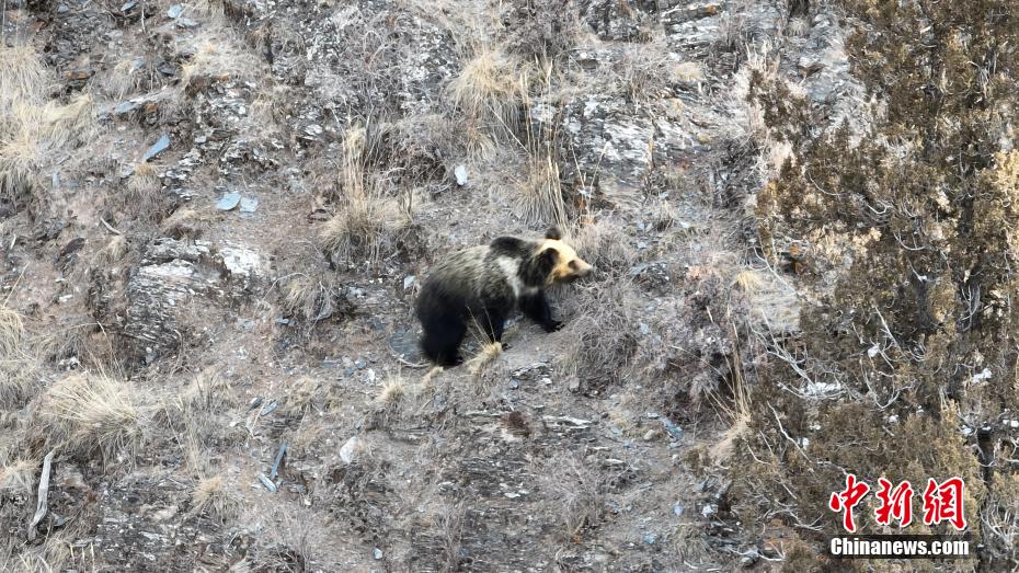 青海三江源生態(tài)管護員記錄結(jié)束冬眠的棕熊影像