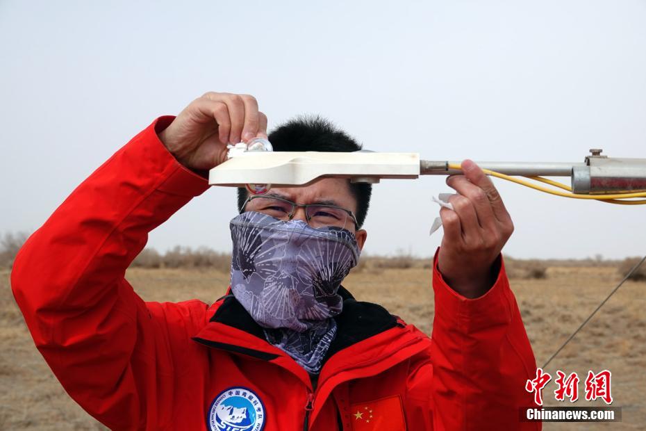 格爾木河流域草地綜合觀測(cè)站,中科院空天院科考隊(duì)員進(jìn)行科研設(shè)備維護(hù)工作。孫自法 攝