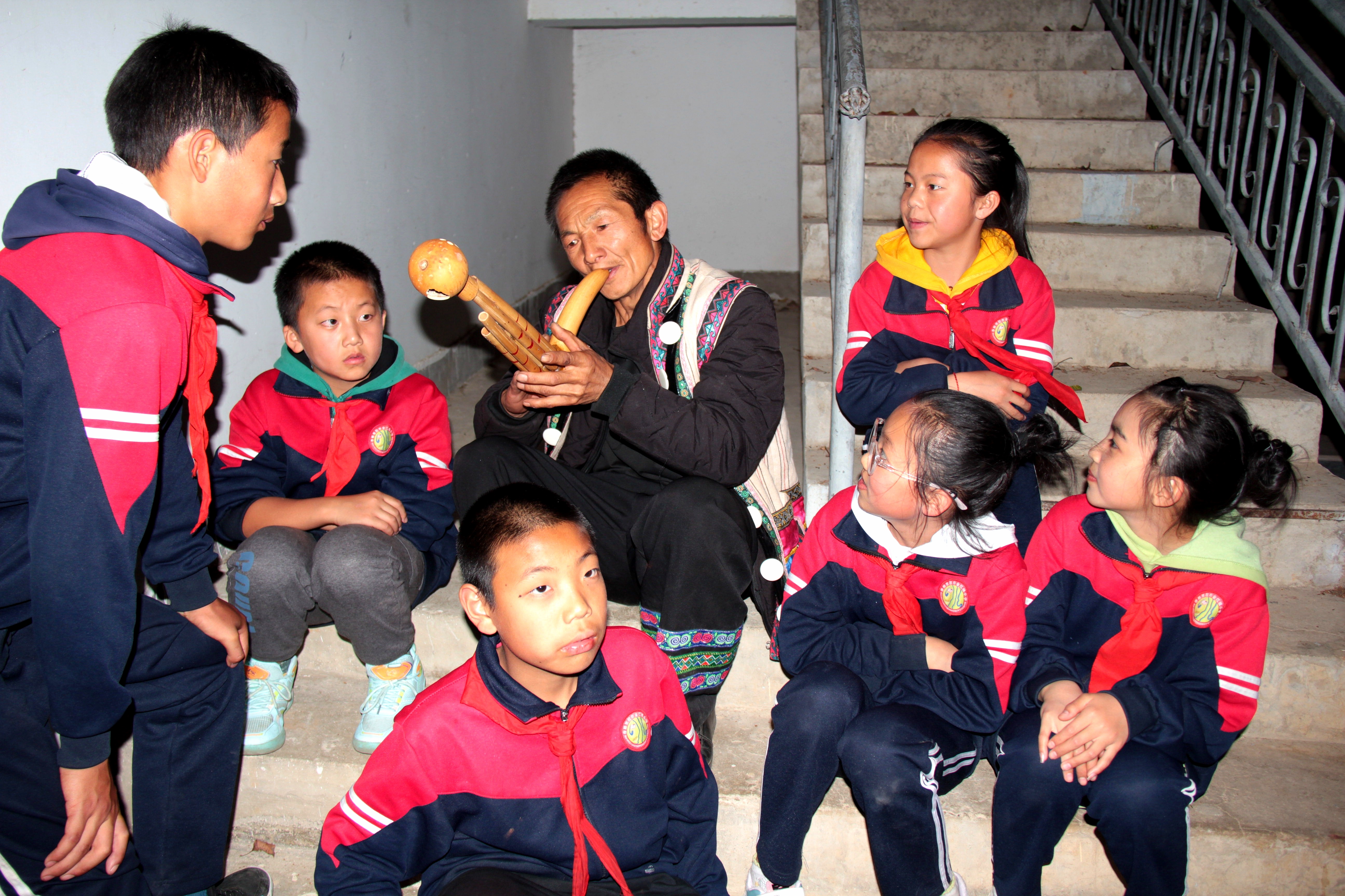 不多時(shí),在金江鎮(zhèn)小學(xué)學(xué)生吹奏的葫蘆絲聲中,篝火晚會(huì)的序幕徐徐拉開。