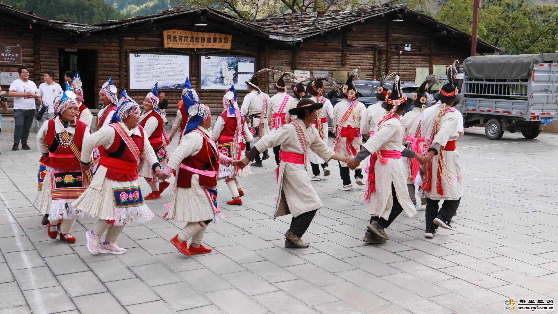 同樂山寨,維西縣保存最為完整的傈僳族傳統(tǒng)村落,村寨建筑多為木楞房,用木頭搭建而成,不上漆、不用鐵釘,取材自然,構(gòu)造簡(jiǎn)單,呈現(xiàn)出自然樸實(shí)之美。當(dāng)?shù)乩圩迦罕娭辛鱾髦环N自?shī)首詷返奈璧?,名為阿尺目刮,意為山羊的歌舞。如今,游客們只要?lái)到同樂山寨,就有一群身著艷麗民族服飾的傈僳族群眾,手挽著手,踏著歡快的節(jié)拍,迎接他們的到來(lái)。
