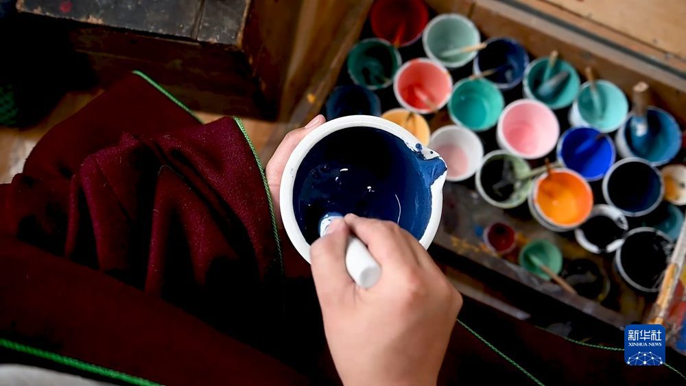 當(dāng)人們走進(jìn)這片“金色谷地”,可以看到幾乎家家戶戶都在從事著唐卡創(chuàng)作。在隆務(wù)河畔,聚集著眾多技藝精湛的畫師。在遠(yuǎn)離世俗的繁華之外,他們畫筆下的世界卻多姿多彩。