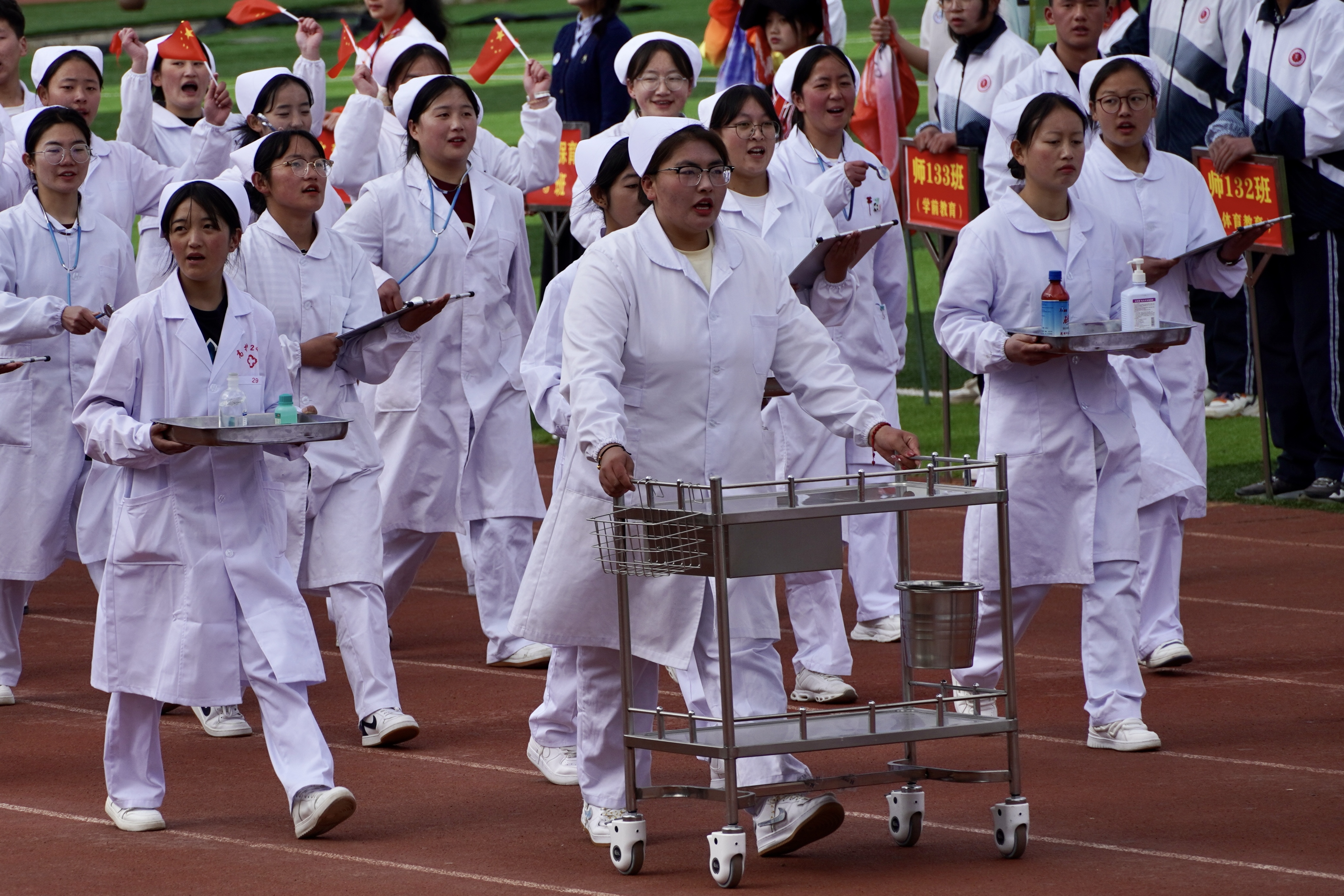 入場儀式上,同學(xué)們將體育運(yùn)動與專業(yè)特色相結(jié)合,進(jìn)行獨(dú)具特色的風(fēng)采展示,贏得全場熱烈的喝彩與掌聲。