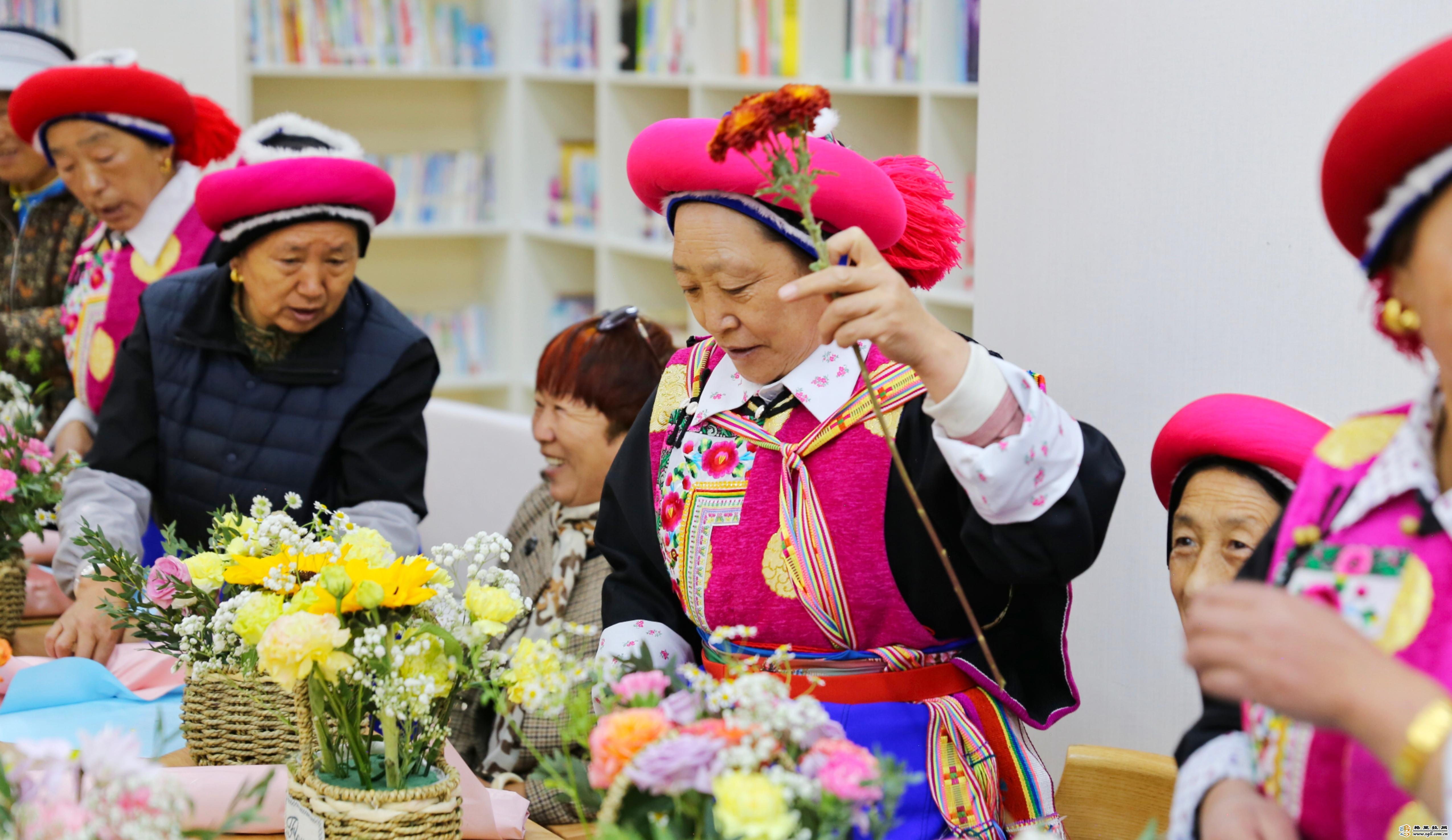 隨后,還組織媽媽們學(xué)習(xí)了插花手藝,活動室內(nèi)充滿了鮮花的芬芳和大家的歡聲笑語。