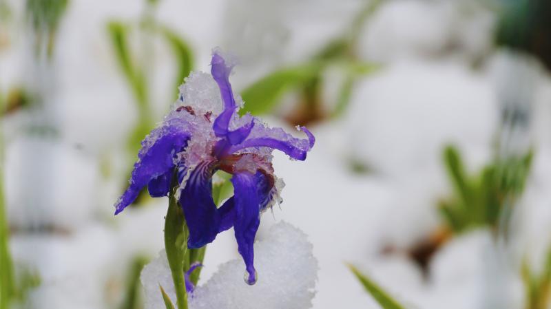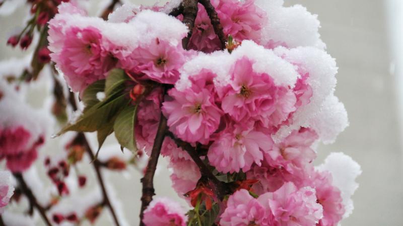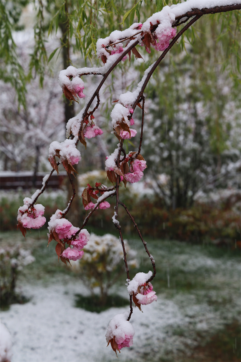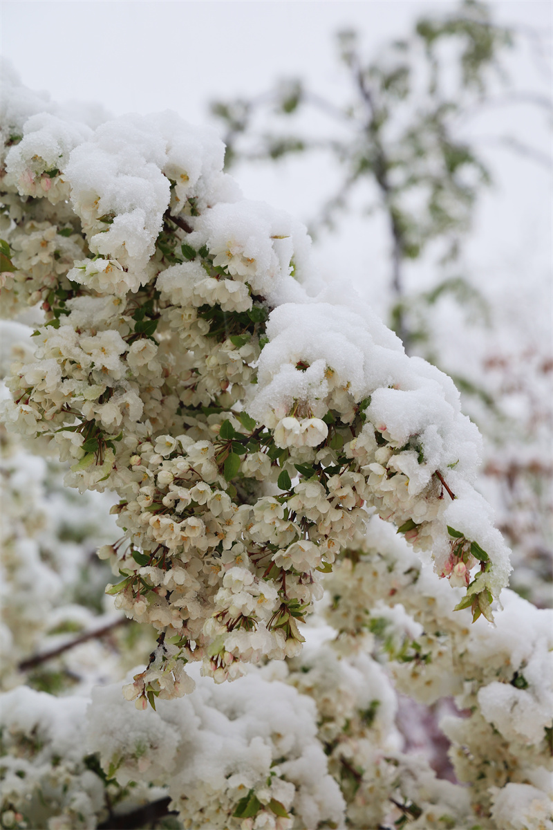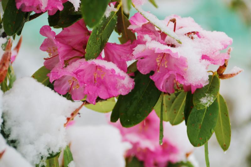 立夏節(jié)氣過后,香格里拉又迎來了一場大雪。櫻花、杜鵑花、鳶尾花在雪中競相綻放,美如童話世界。