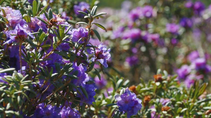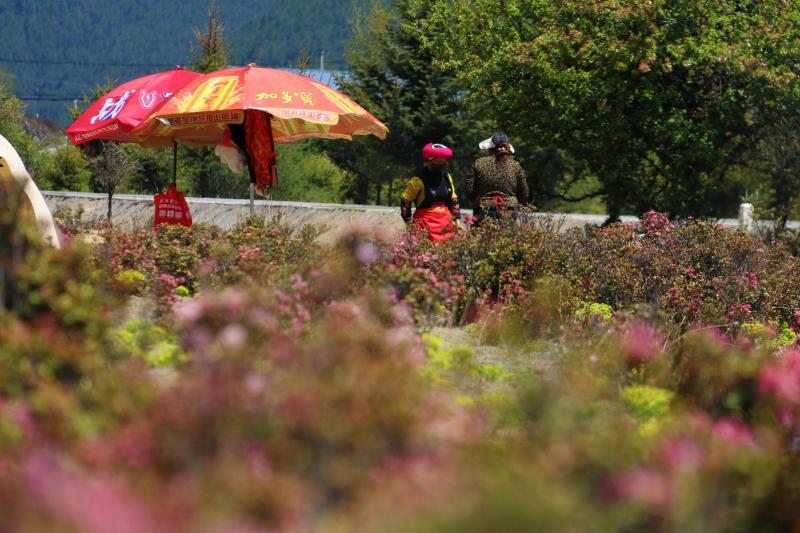 夏天,位于香格里拉市小中甸鎮(zhèn)的杜鵑花海競(jìng)相綻放,紫色、粉色的花朵開(kāi)成了海,與藍(lán)天白云遙相呼應(yīng),藏房點(diǎn)綴其間,美不勝收。每當(dāng)花季,當(dāng)?shù)氐睦习傩赵诨ê_厰[起特色美食,牦牛酸奶、苦蕎粑粑、酥油茶等美食供游客享用,坐在花海邊,品嘗當(dāng)?shù)靥厣朗?,是這個(gè)夏天小中甸花海獨(dú)有的浪漫。