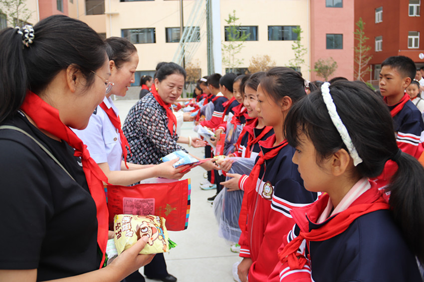 慰問組一行為50名困境兒童送上節(jié)日的祝福和禮物,勉勵他們要感恩父母、老師的教育陪伴,珍惜今天的幸福生活,從小樹立遠(yuǎn)大理想,好好學(xué)習(xí)、天天向上,長大后為建設(shè)祖國和家鄉(xiāng)貢獻(xiàn)力量。