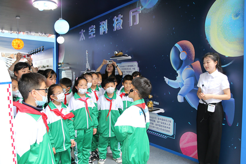 在軍工科技廳的運20模型前,“小軍迷”熊子睿熱情地向同學們介紹起這架飛機的構造、功能和優(yōu)點。[詳細] -