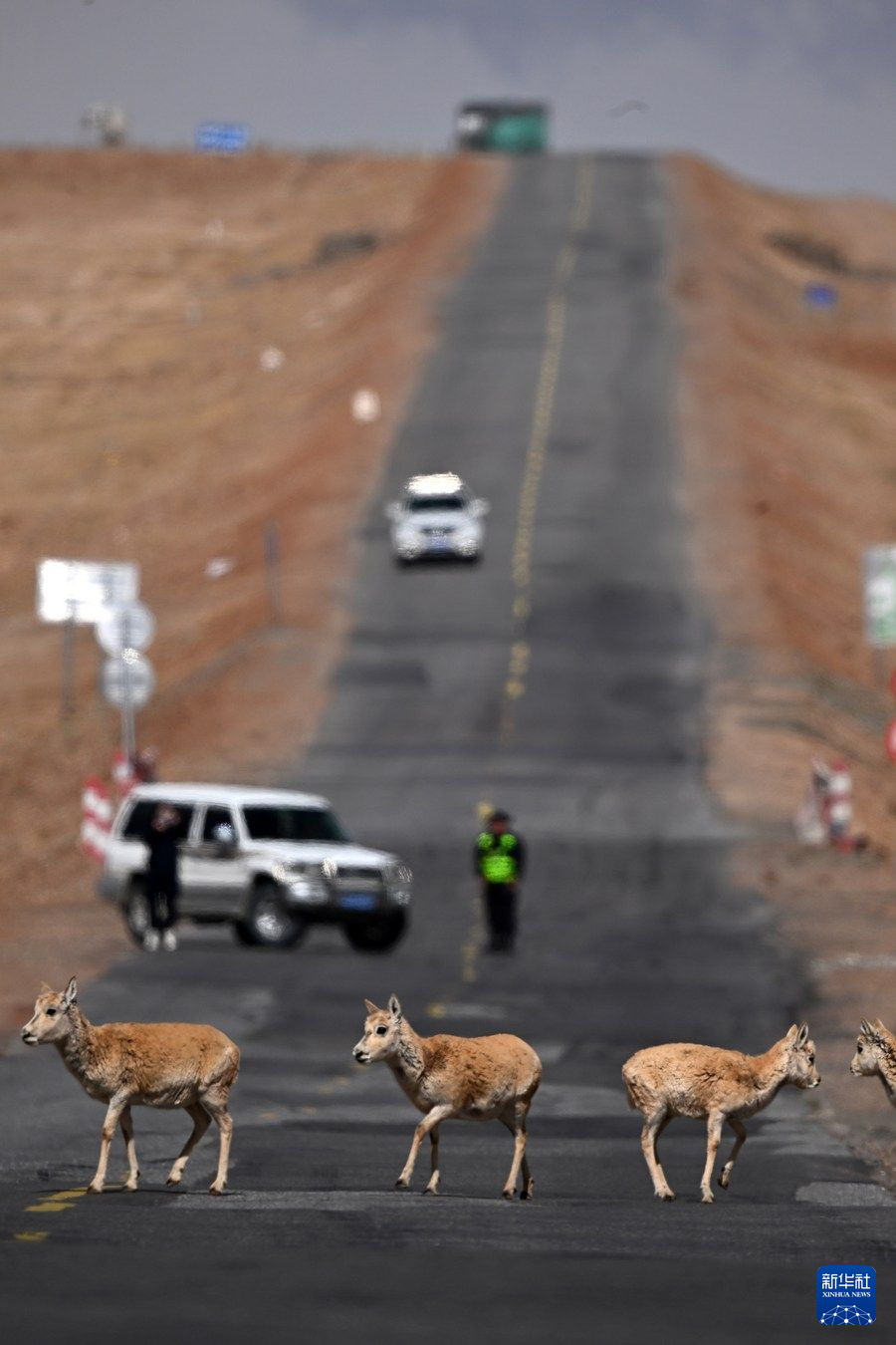 “為保證藏羚羊順利遷徙產(chǎn)仔,近期我們加強(qiáng)了對(duì)青藏公路沿線的巡護(hù),采取交通管制、禁止鳴笛、巡護(hù)救助等措施,讓藏羚羊安全通過(guò)?!比磭?guó)家公園管理局長(zhǎng)江源園區(qū)可可西里管理處五道梁保護(hù)站工作人員江文多杰說(shuō)。